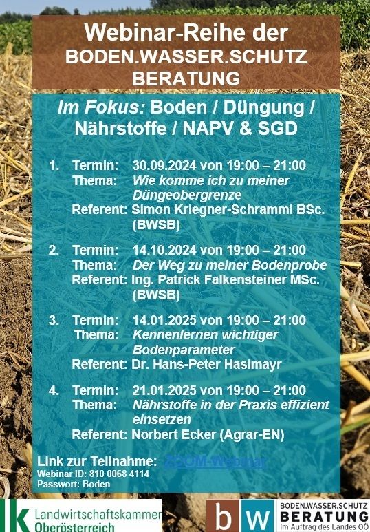 Webinar-Reihe der BODEN.WASSER.SCHUTZ BERATUNG - 2. Termin - Der Weg zu meiner Bodenprobe